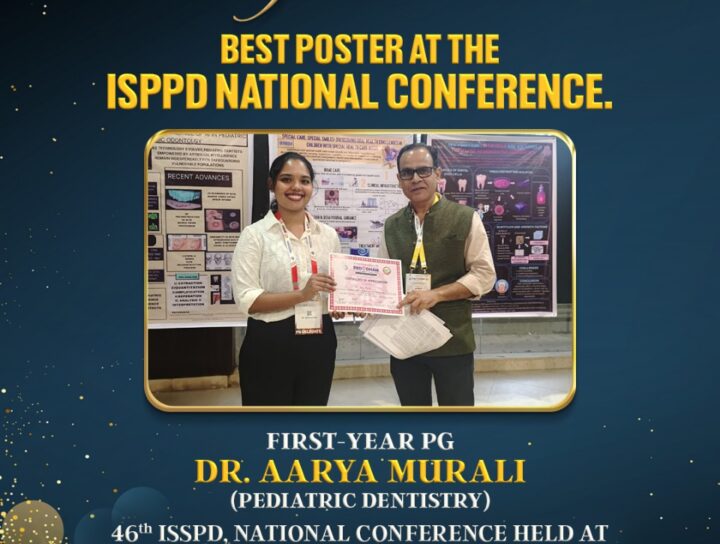 - Dr. Aarya Murali has won the Best Poster Award at the 46th ISPPD National Conference >>