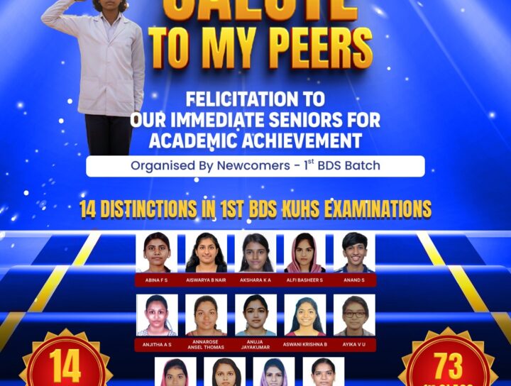 - Congratulations to our Ist year BDS students for achieving 14 Distinctions and 73 First Class results in the KUHS examinations >>