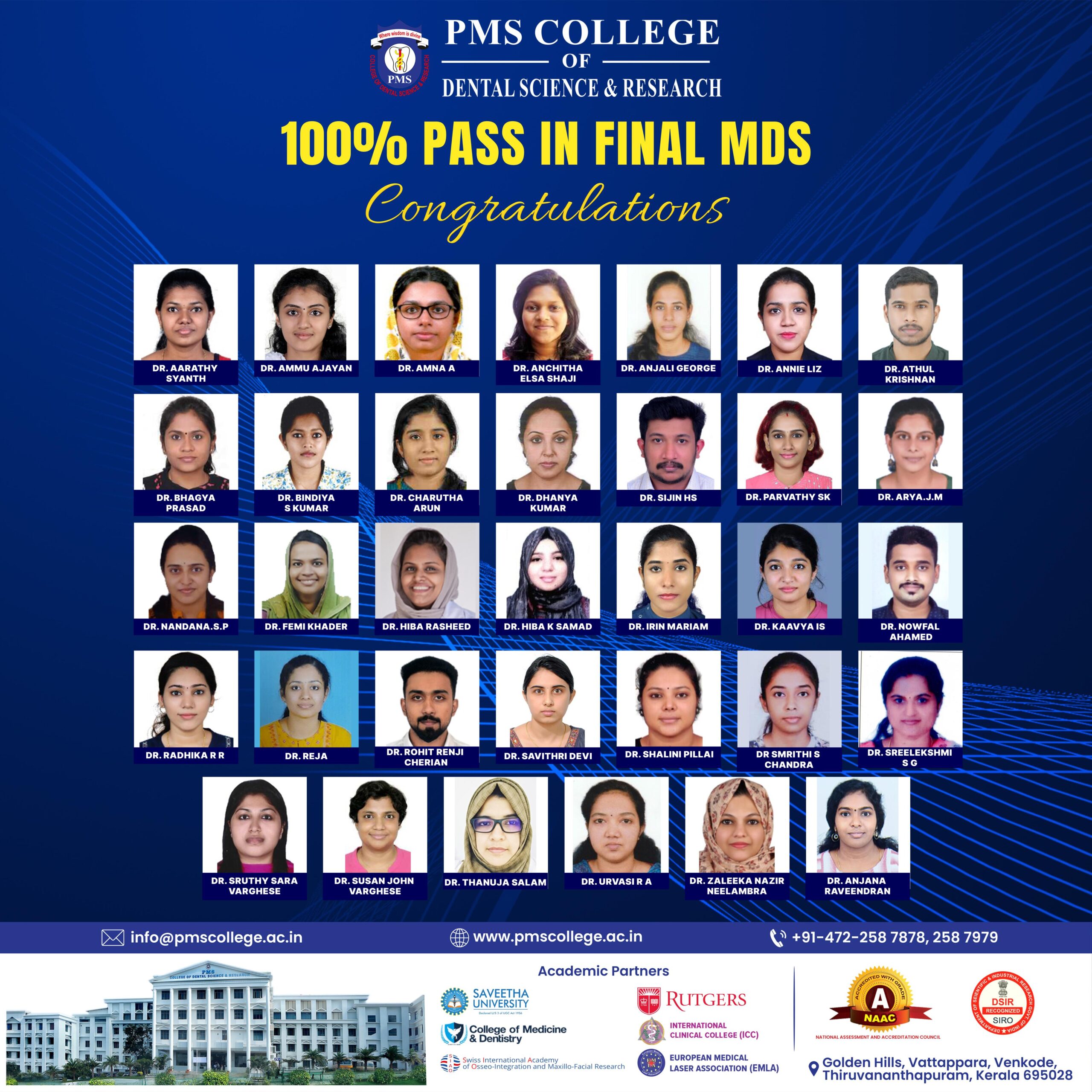 PMS College of Dental Science & Research proudly celebrates a 100% pass result in the Final MDS examination.