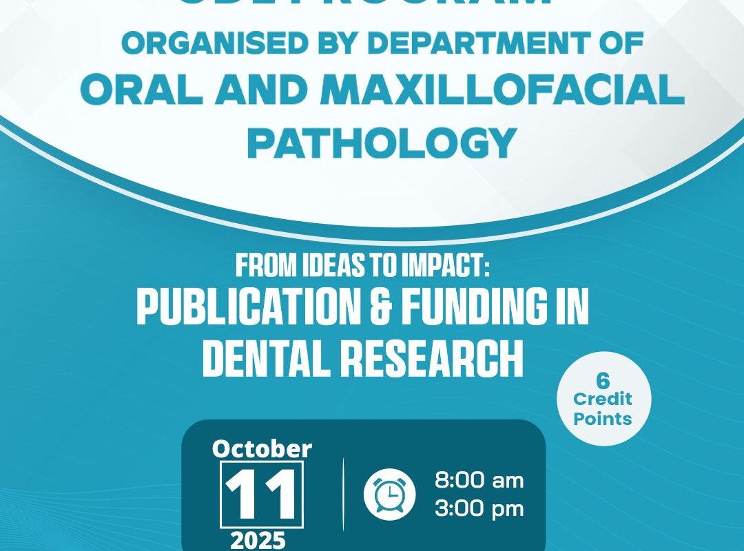 📢 Upcoming CDE Program ORGANISED BY DEPARTMENT OF ORAL AND MAXILLOFACIAL РATHОOLOGY