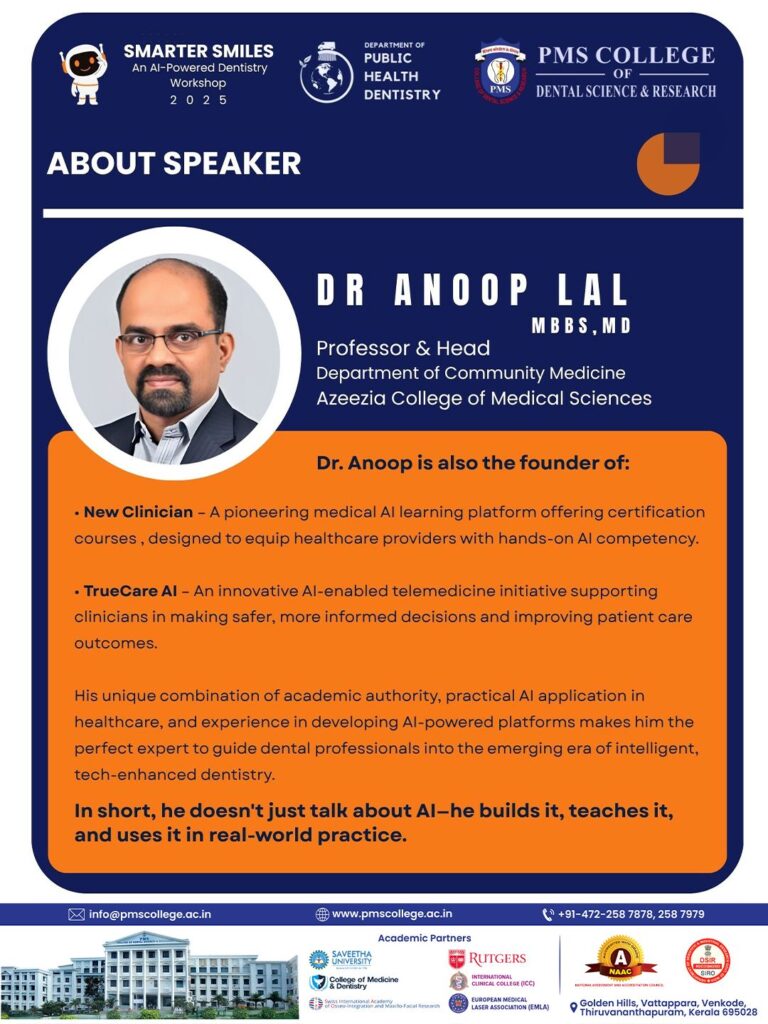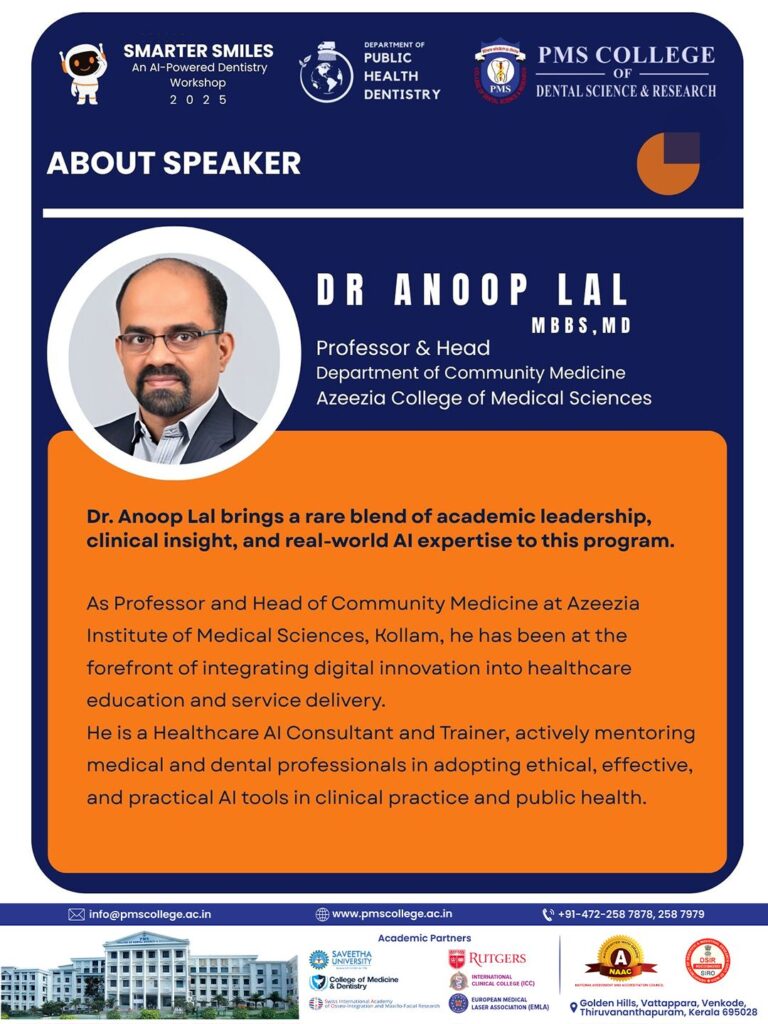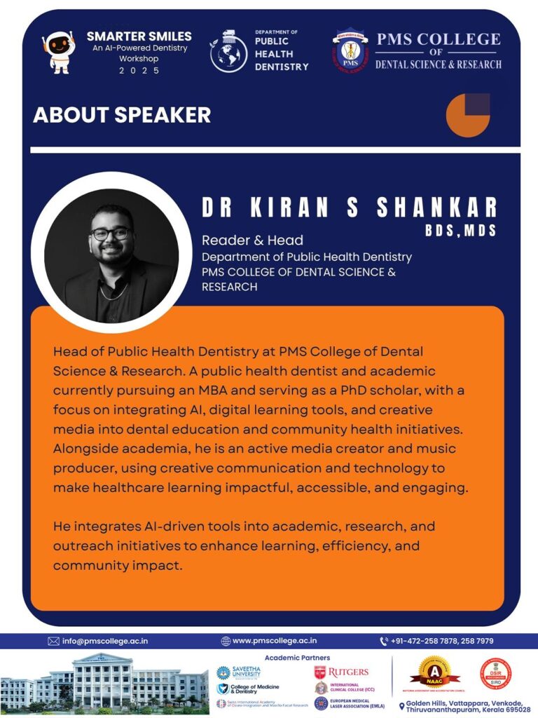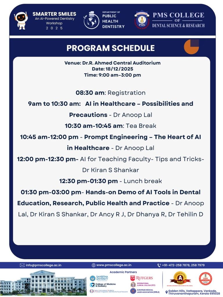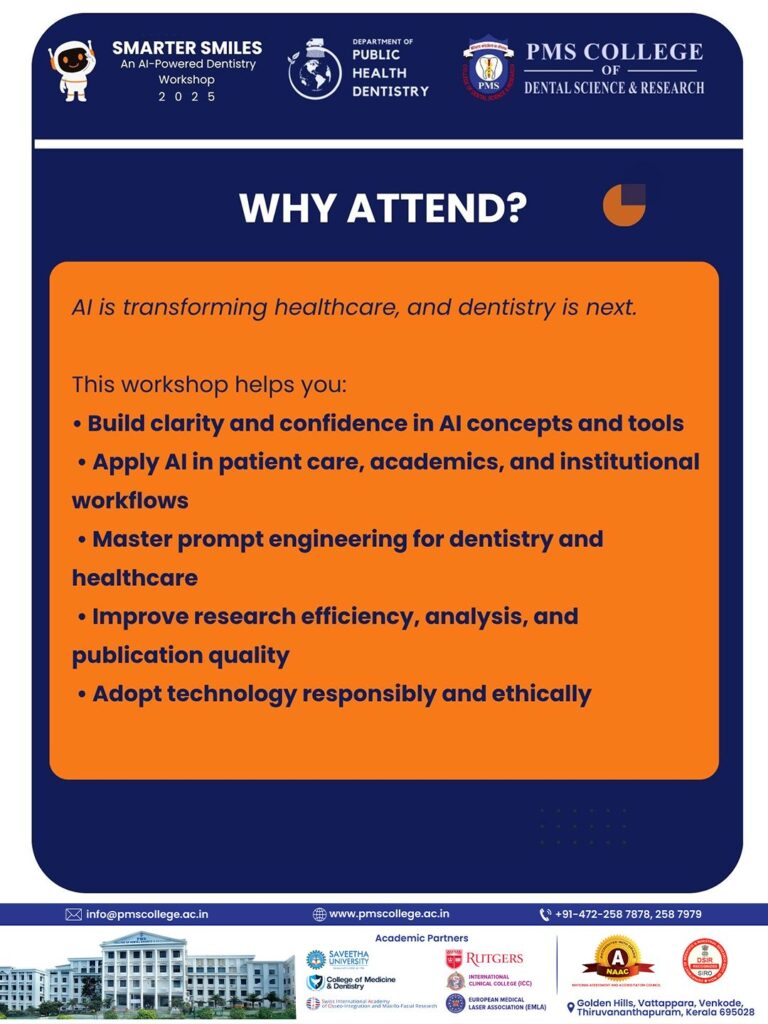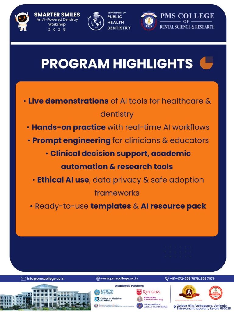 PMS College of Dental Science & Research presents a hands-on workshop on how AI is reshaping dental education, research & practice.