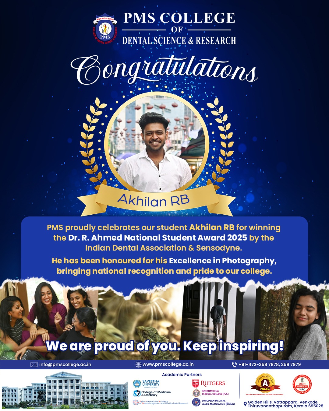 Proud moment for PMS College of Dental Science and Research. Akhilan RB, Final year UG…