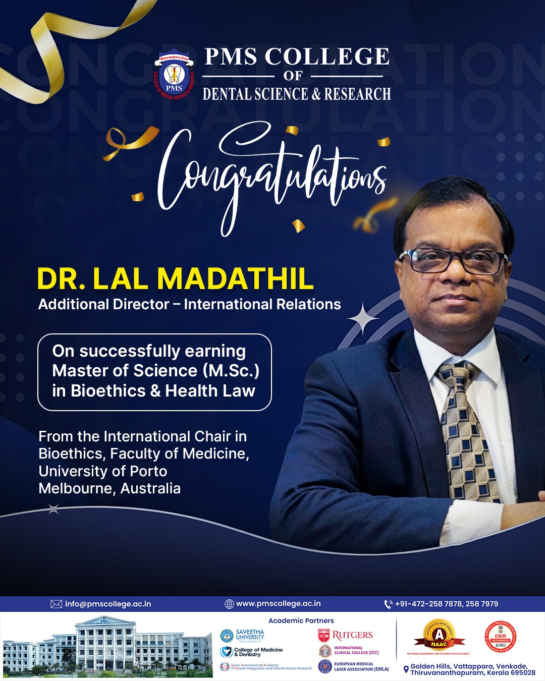 PMS College, Melbourne, Australia proudly congratulates Dr. Lal Madathil, Additional Director – International Relations 🎉 He has successfully earned his…