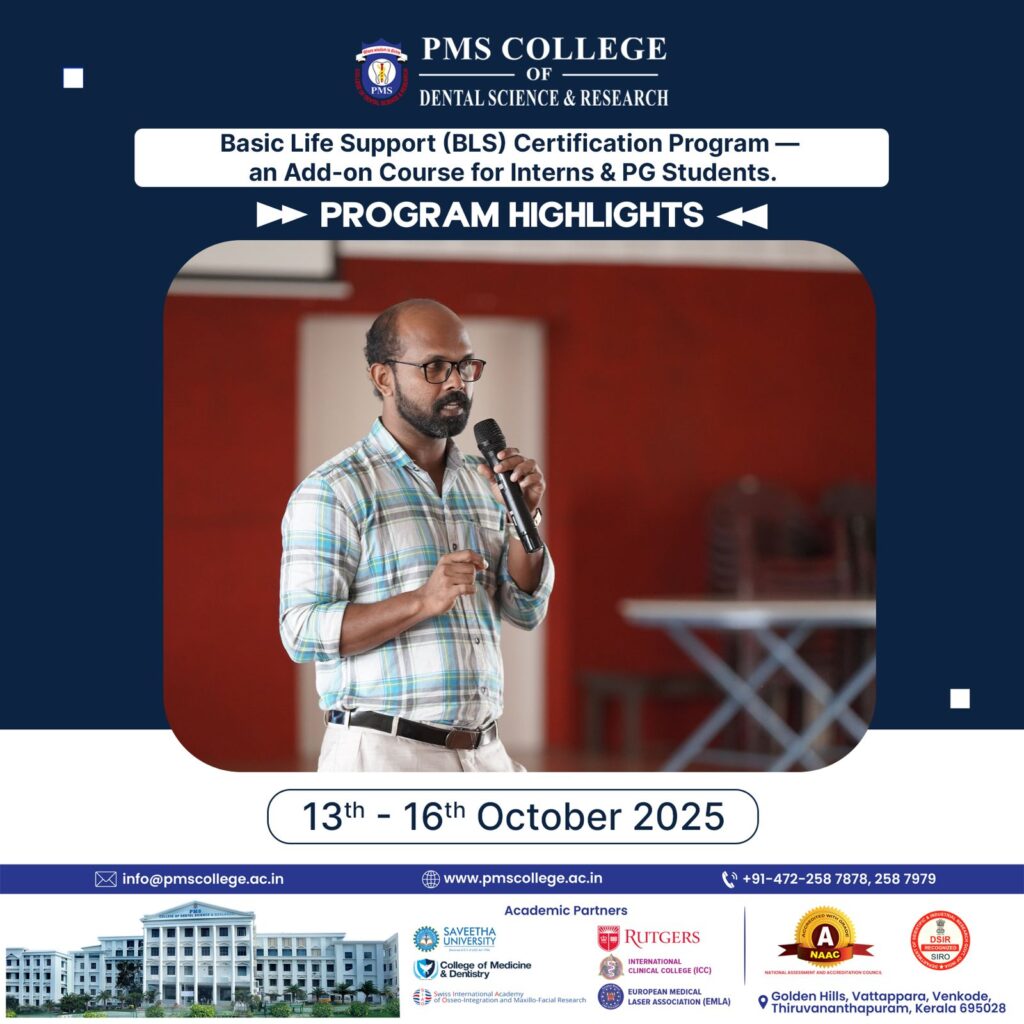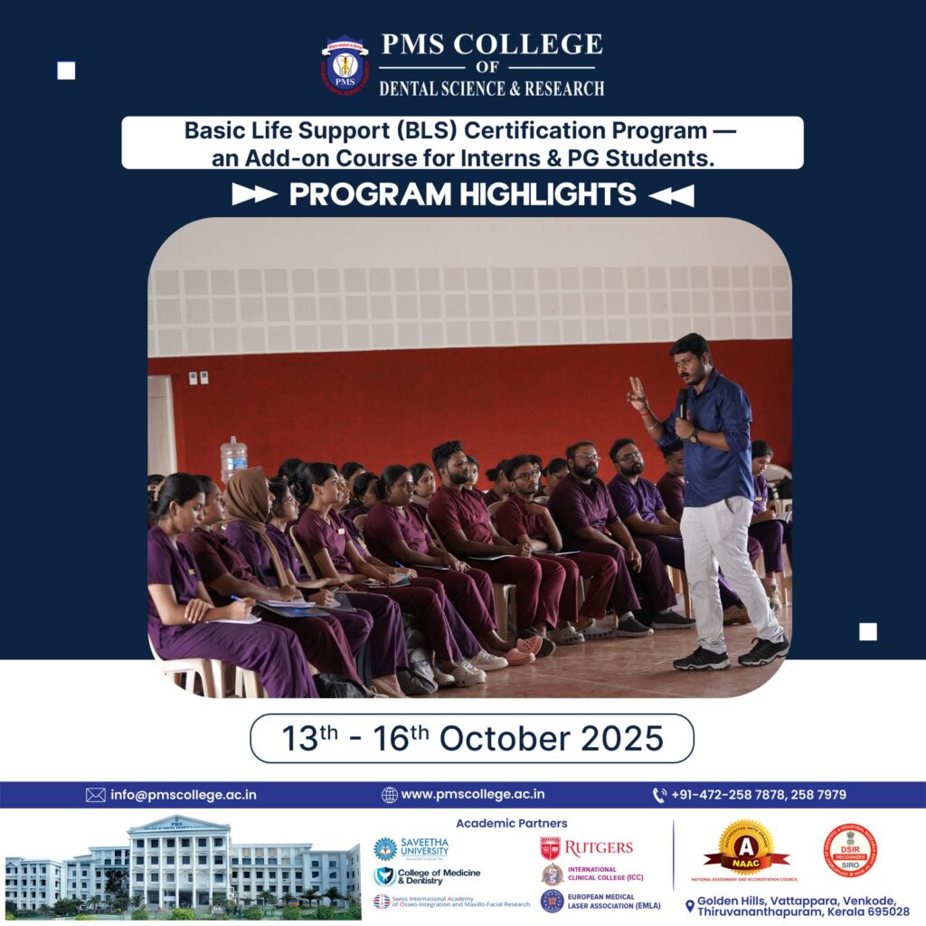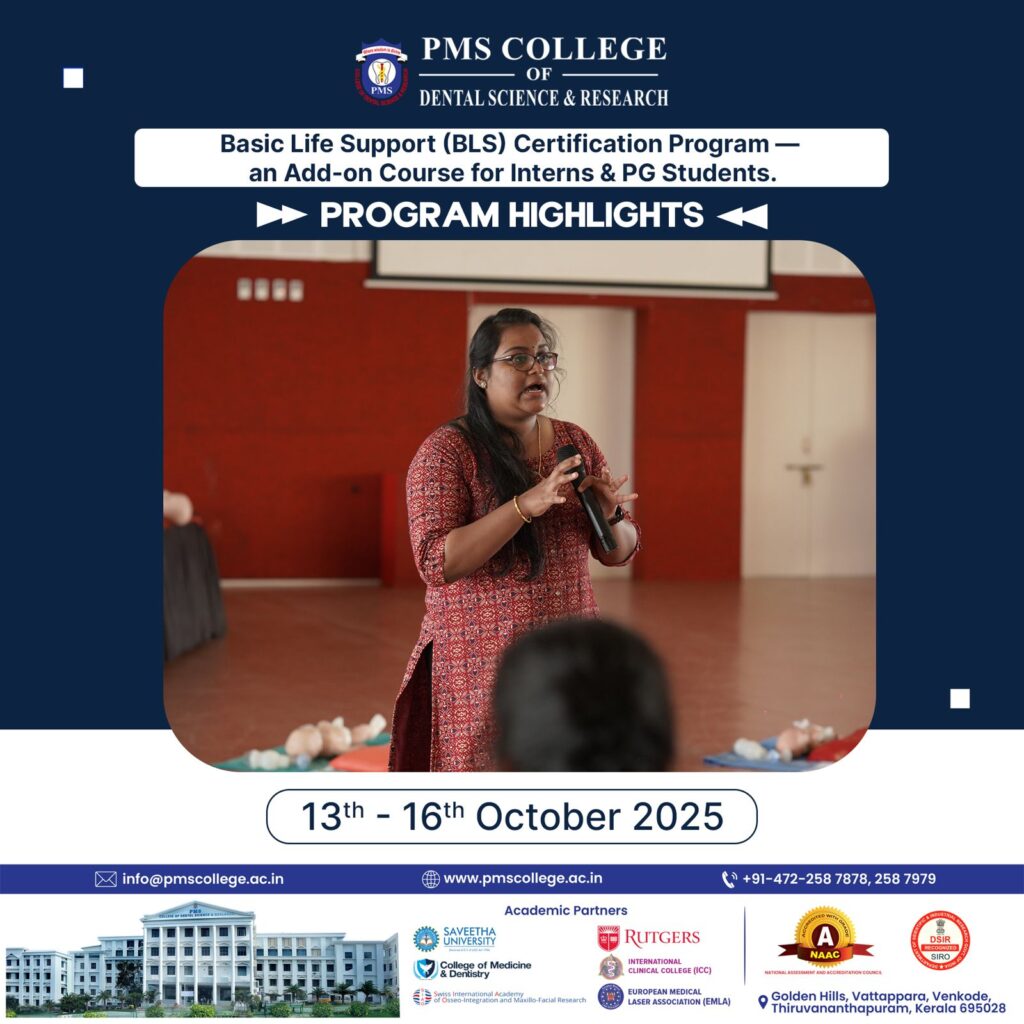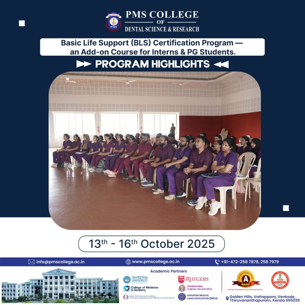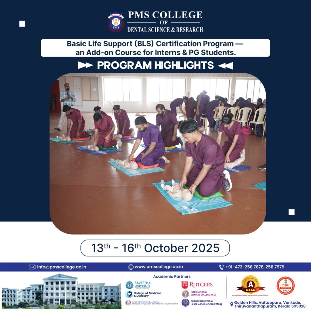 The Basic Life Support (BLS) Certification Program was successfully conducted at PMS College of Dental Science & Research from 13th β 16th October 2025.