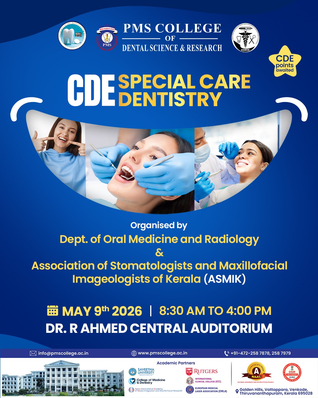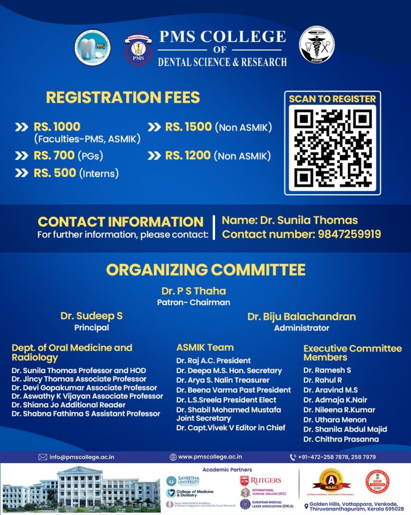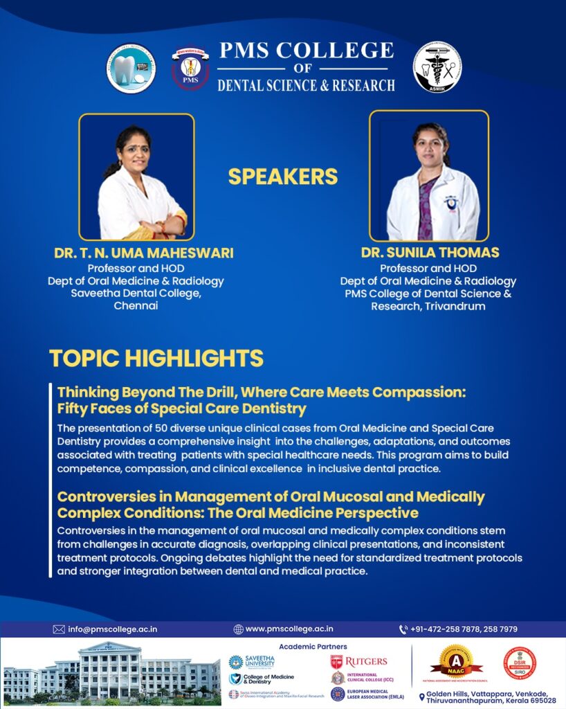 - Dr. Sunila Thomas – Professor & HOD, Dept. of Oral Medicine & Radiology, PMS College of Dental Science & Research, Trivandrum