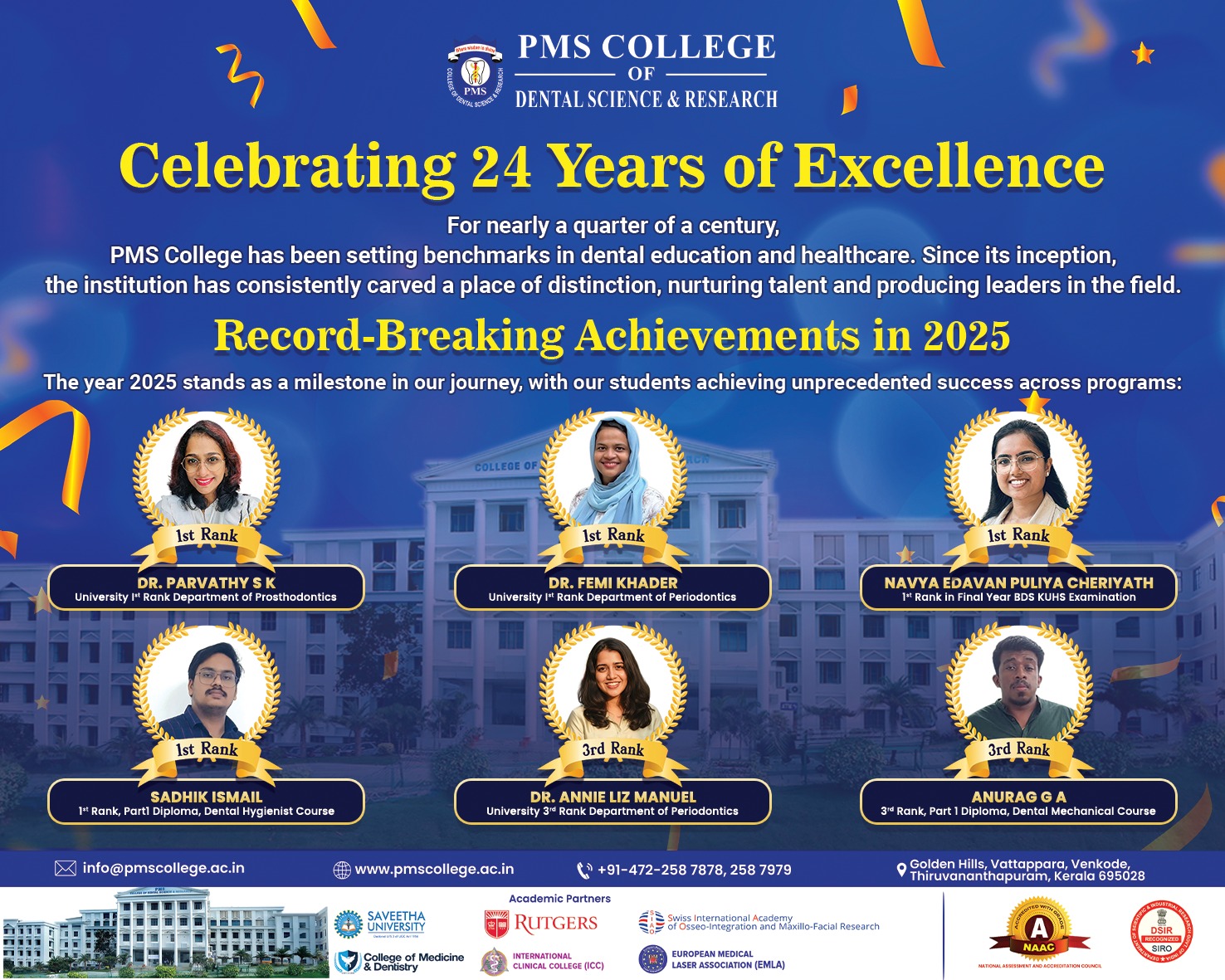 PMS College of Dental Science & Research proudly marks 2025 with outstanding academic achievements and university ranks—continuing a legacy of excellence in dental education.