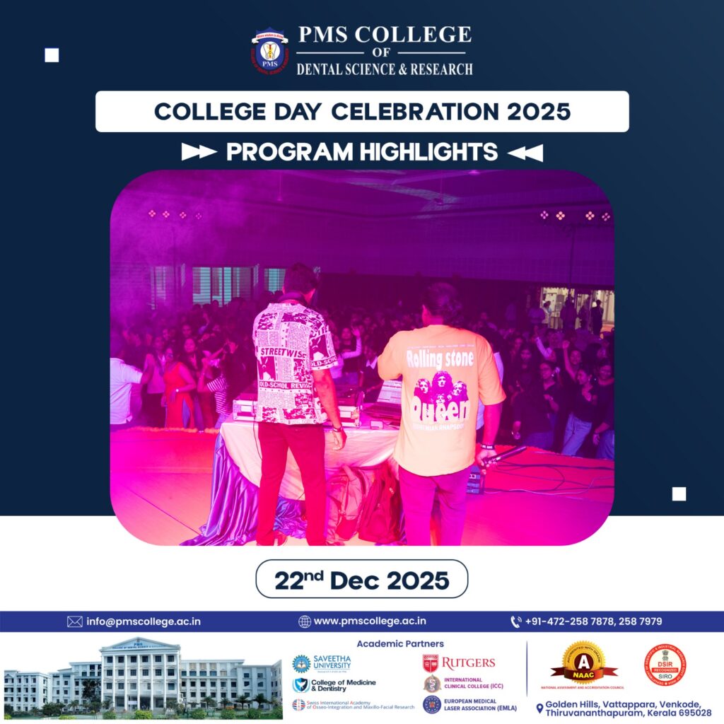 A glimpse of the vibrant College Day Celebration 2025 at PMS College of Dental Science & Research, where talent and togetherness took center stage.