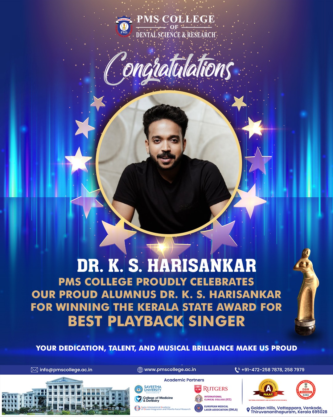 Heartfelt congratulations to our former student Dr. K. S. Harisankar for winning the Kerala State Award for Best Playback Singer.