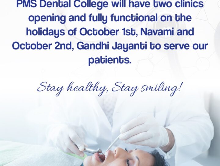 PMS Dental College Clinics Functional on Navami & Gandhi Jayanti PMS Dental College hereby informs that...