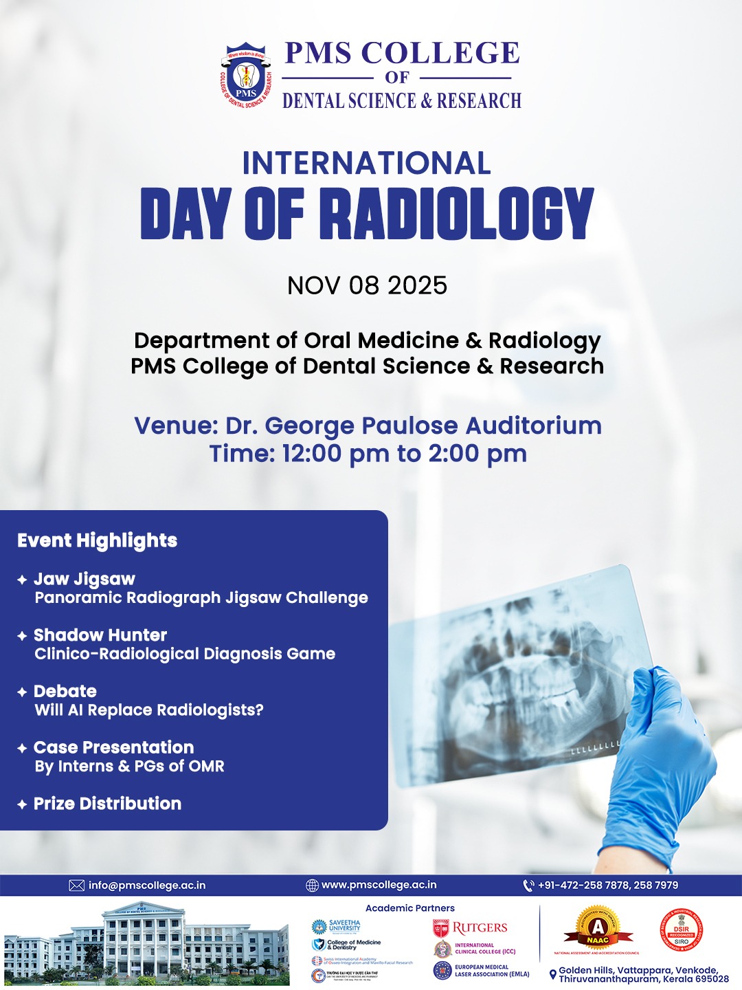 📍 Venue: Dr. George Paulose Auditorium, PMS College of Dental Science & Research