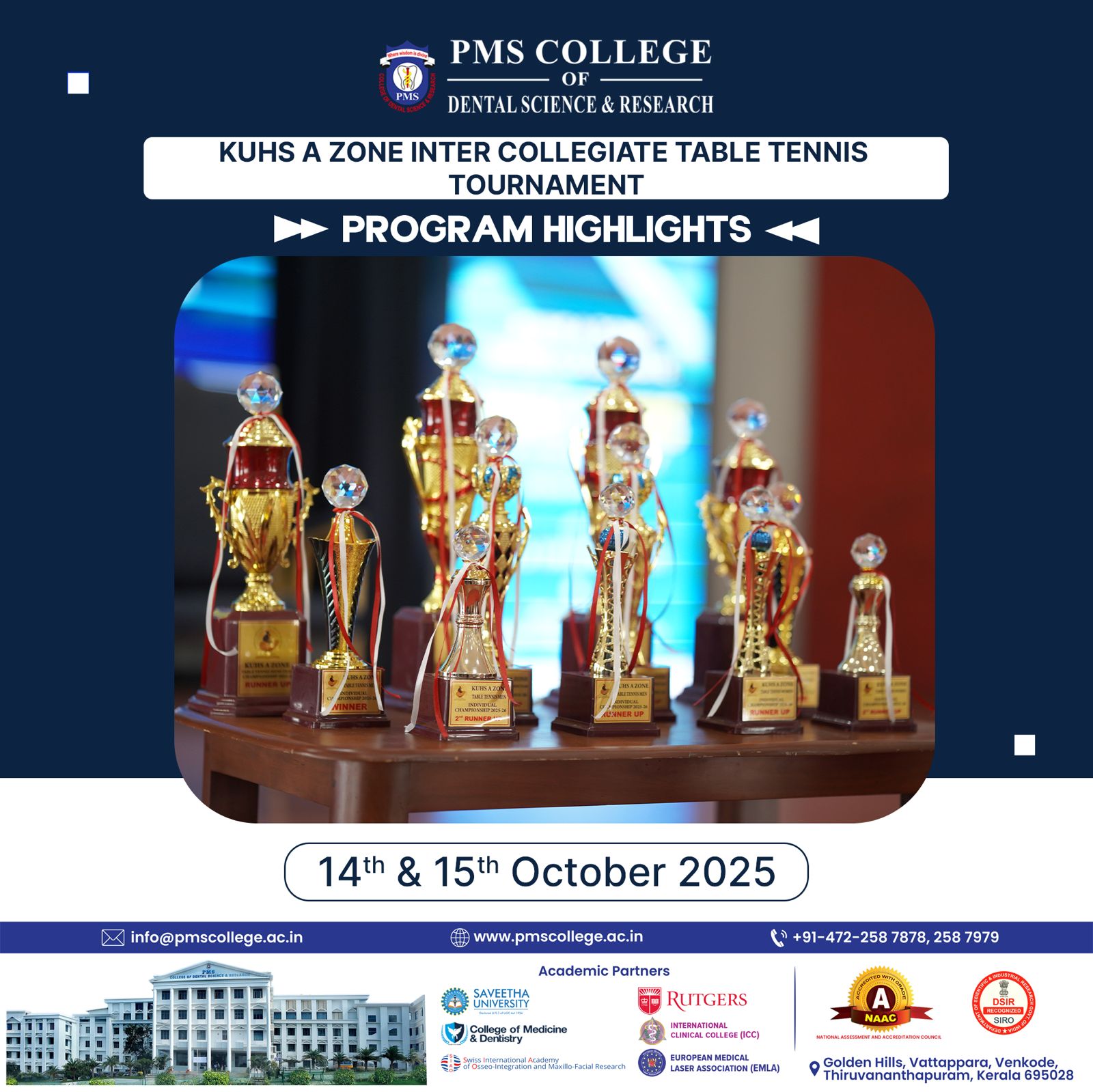The KUHS A Zone Inter Collegiate Table Tennis Tournament was successfully hosted by PMS College of Dental Science & Research on 14th & 15th October 2025. 🏓