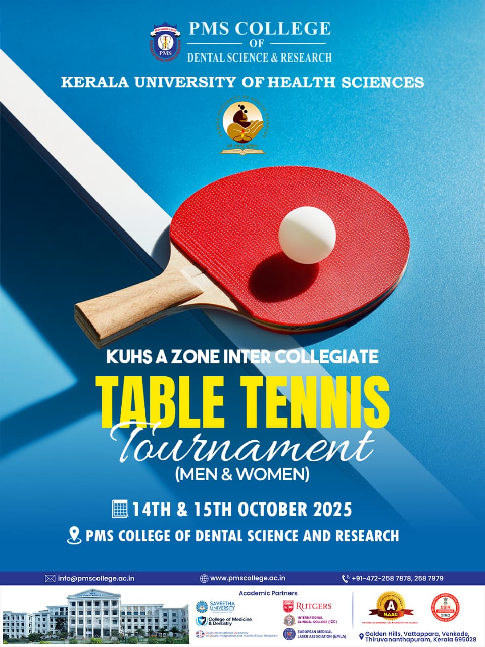 PMS College of Dental Science & Research hosts the KUHS A Zone Inter Collegiate Table Tennis Tournament (Men & Women).
