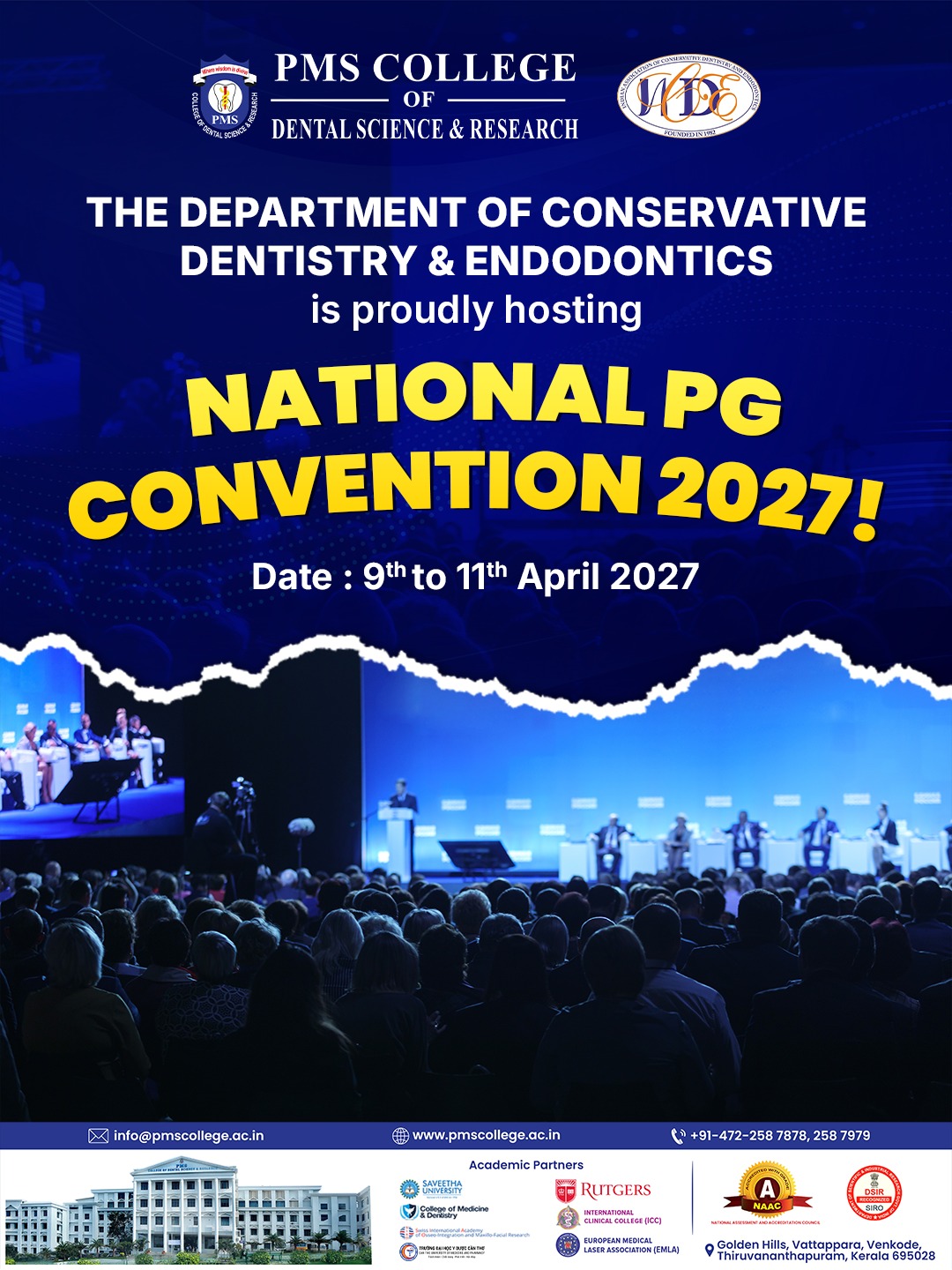 The Department of Conservative Dentistry & Endodontics, PMS College of Dental Science & Research, proudly hosts the National PG Convention 2027 🦷