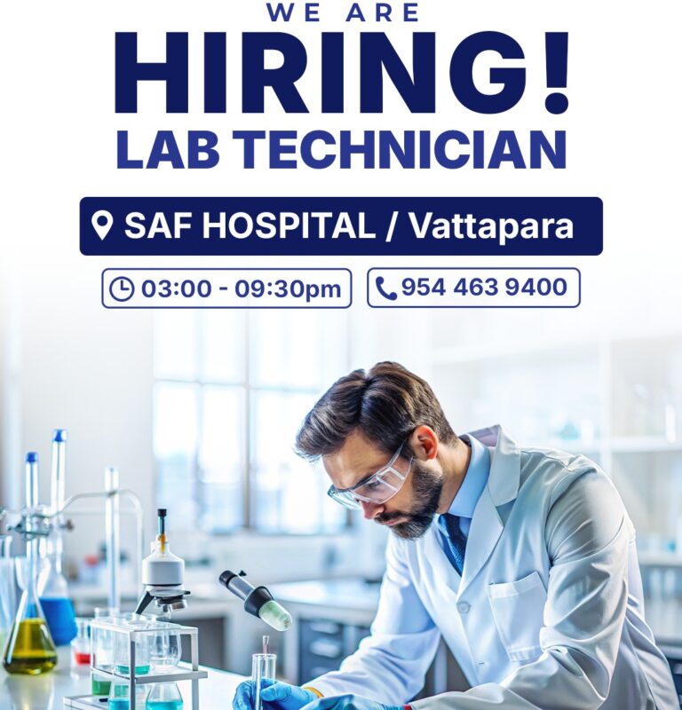 We’re Hiring | Lab Technician Join our team at SAF Hospital, Vattapara 🏥If you’re skilled and passio...