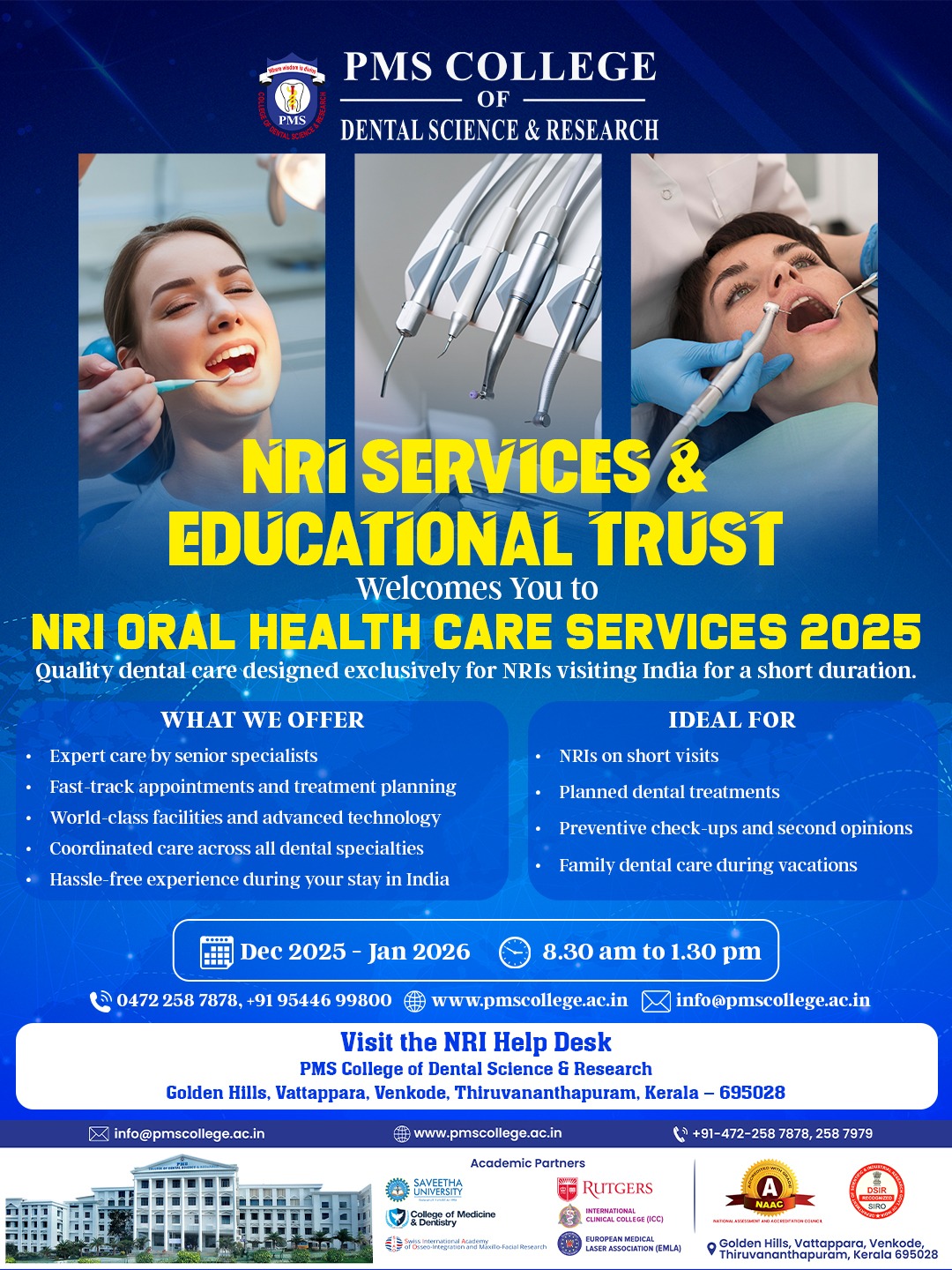 PMS College of Dental Science & Research offers exclusive, fast-track dental care for NRIs—planned, precise, and hassle-free.