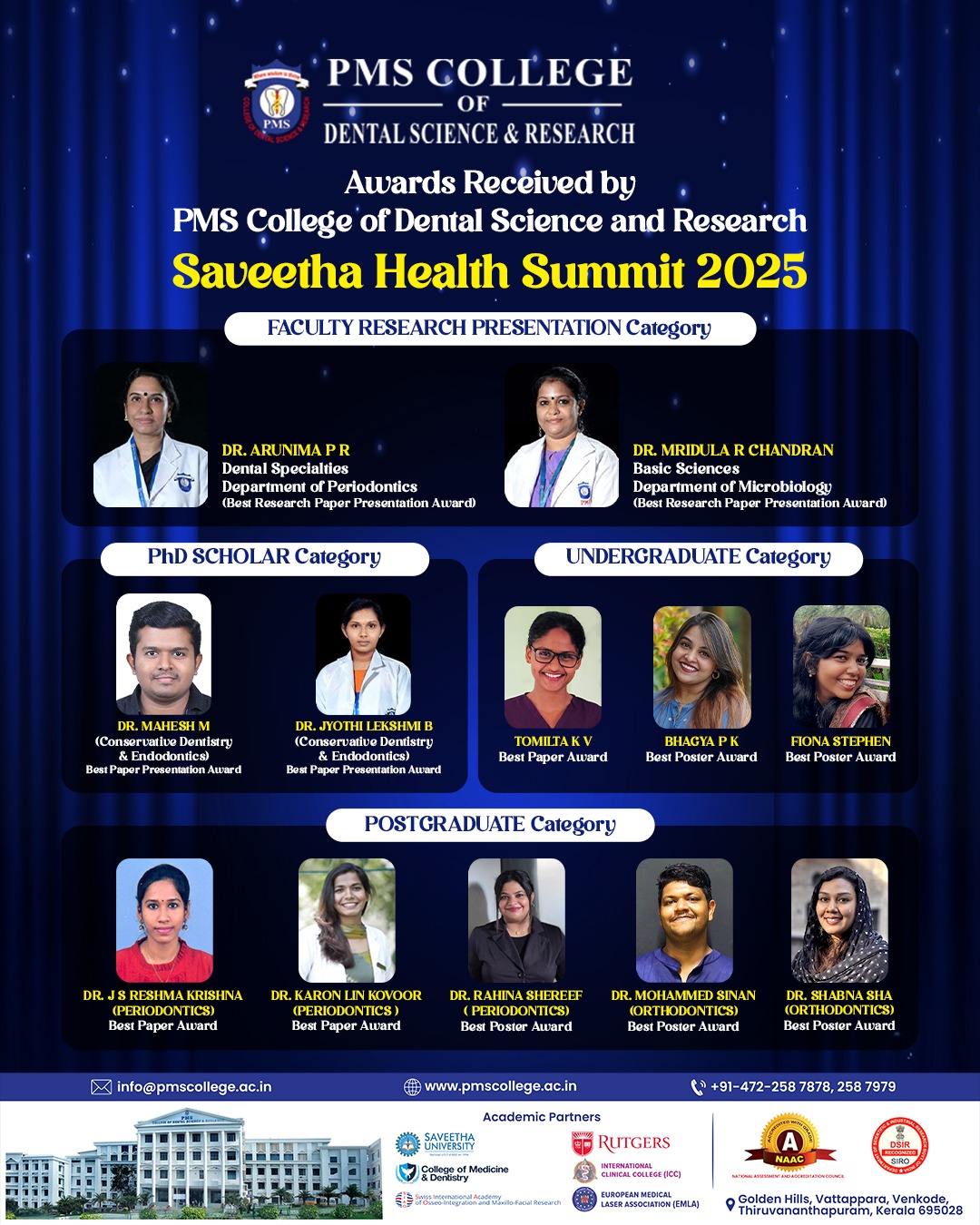 Our faculty and students shined at Saveetha Health Summit 2025, winning multiple awards for research excellence 🦷✨