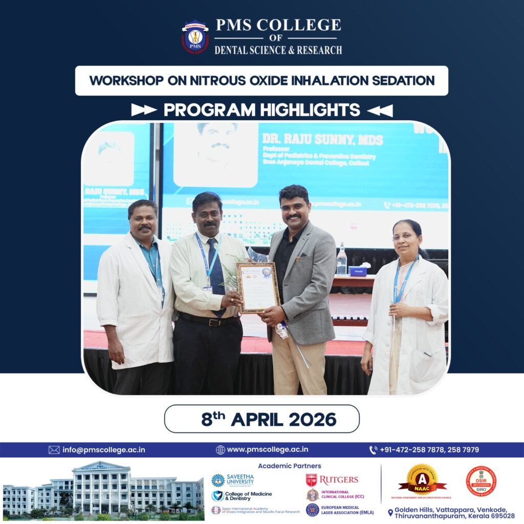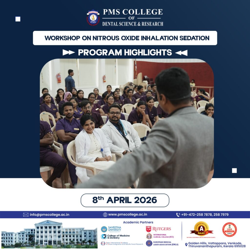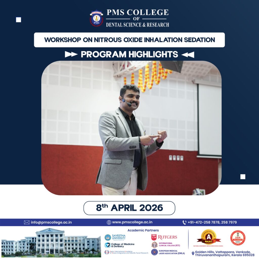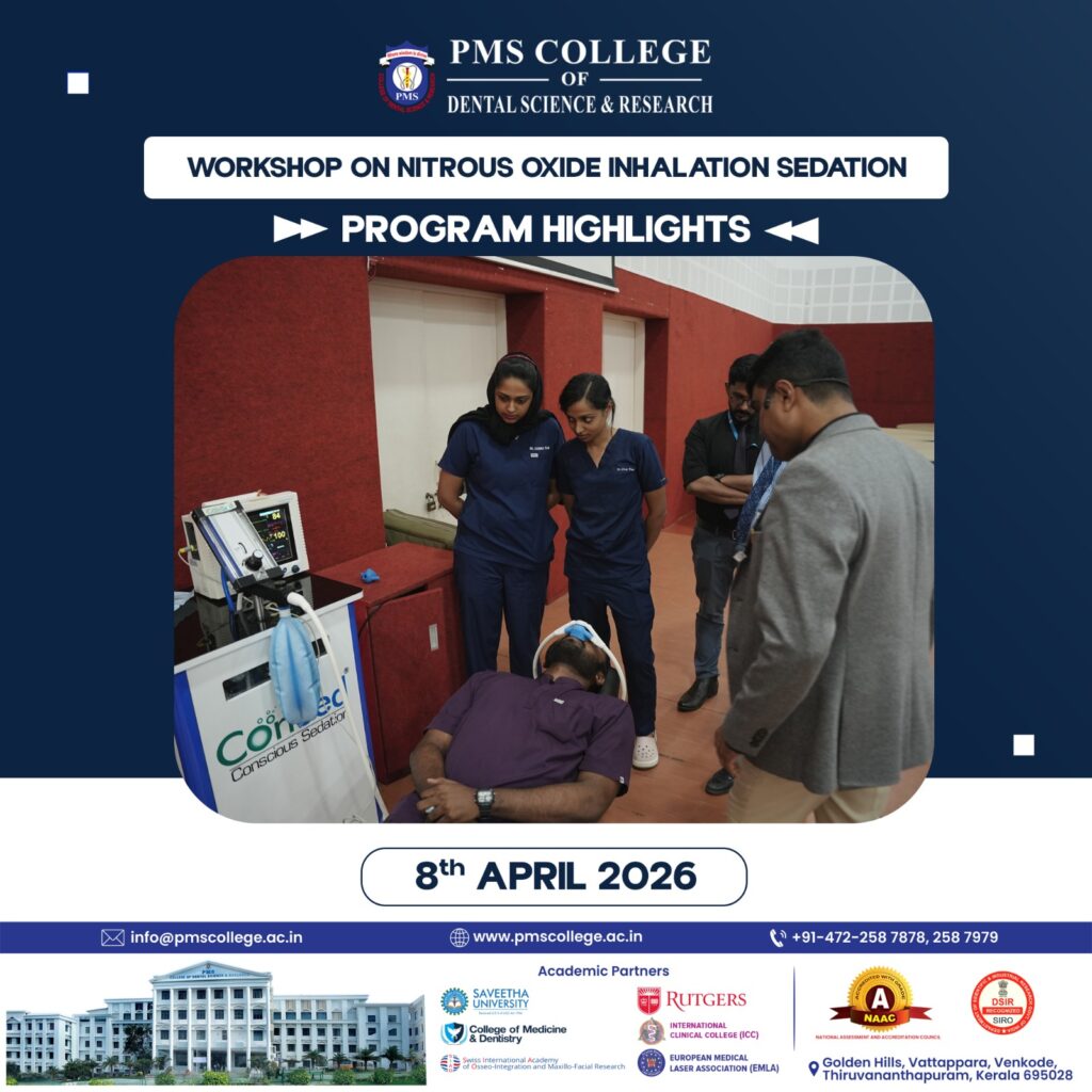 PMS College of Dental Science & Research proudly hosted a specialized workshop on Nitrous Oxide Inhalation Sedation by